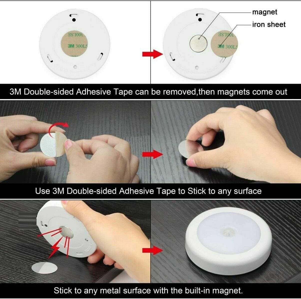 • Easy to Install: Lumirew™ doesn't require any wiring or socket for installation. It comes with double-sided adhesive tape and a built-in magnet that sticks anywhere.